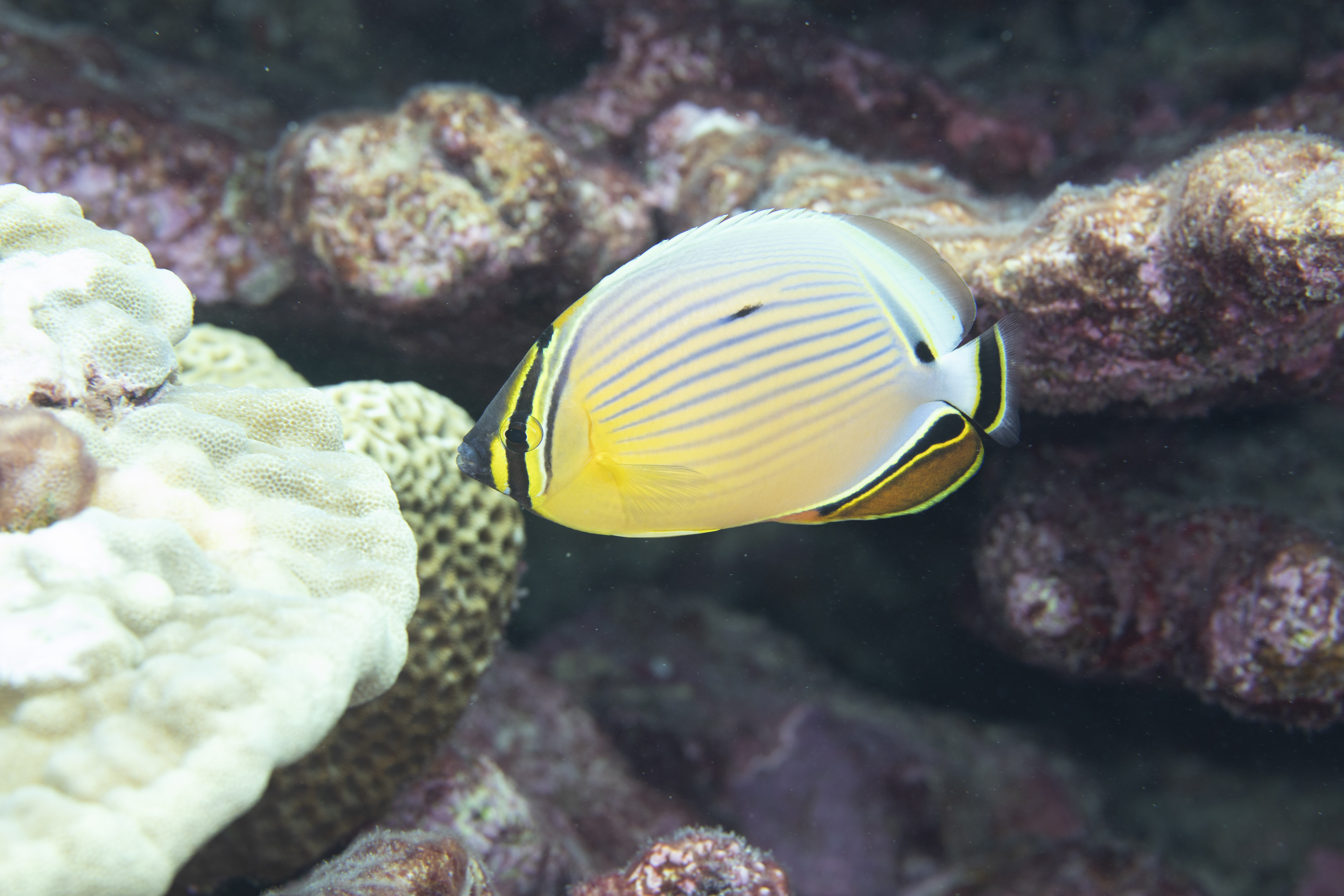 Redfin butterflyfish swimming around the coral at Palmyra Atoll