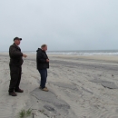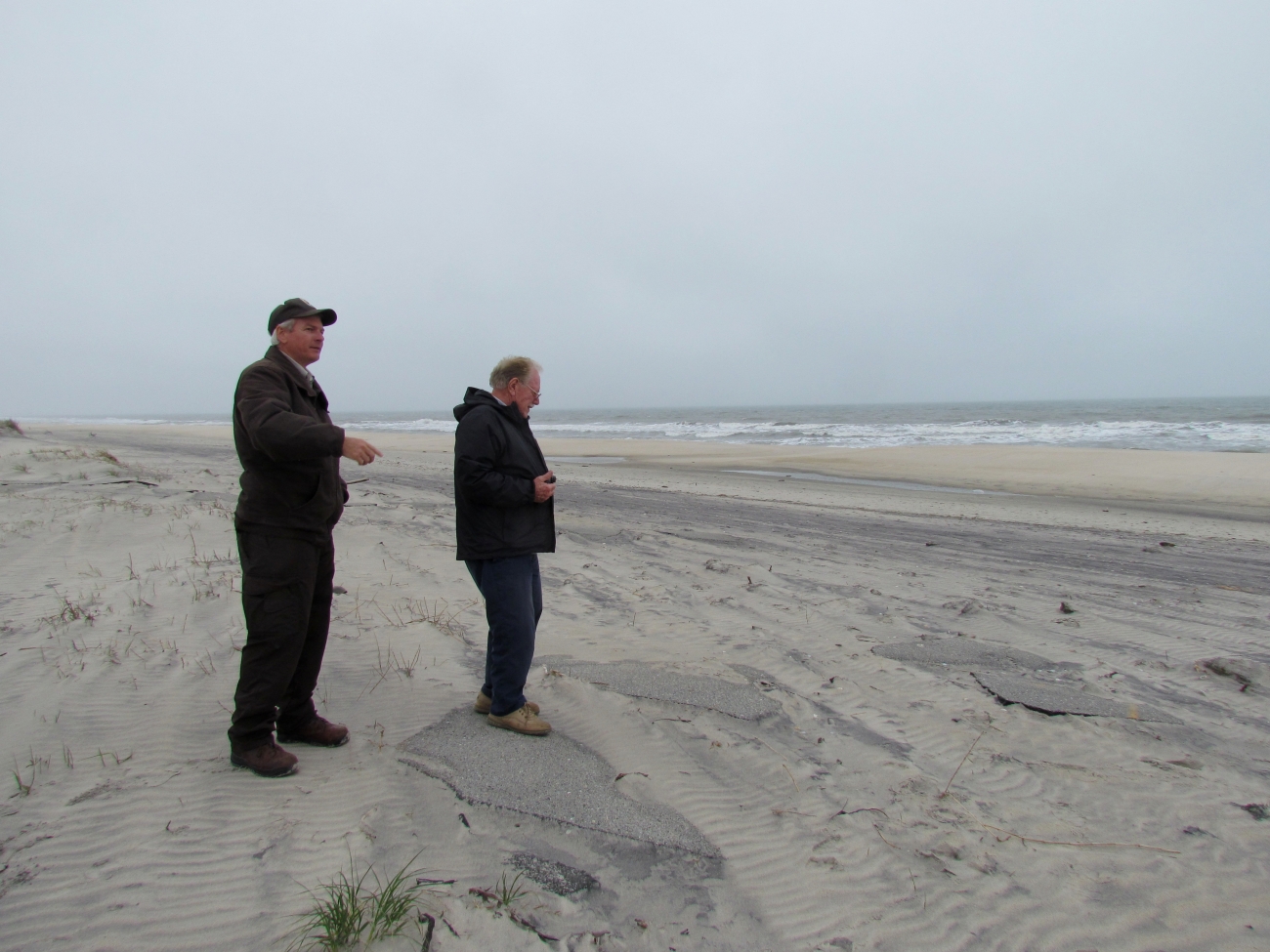 Refuge biologist, Kevin Holcomb, and geomorphologist from Rutger's University survey storm damage from Winter Storm Jonathan.