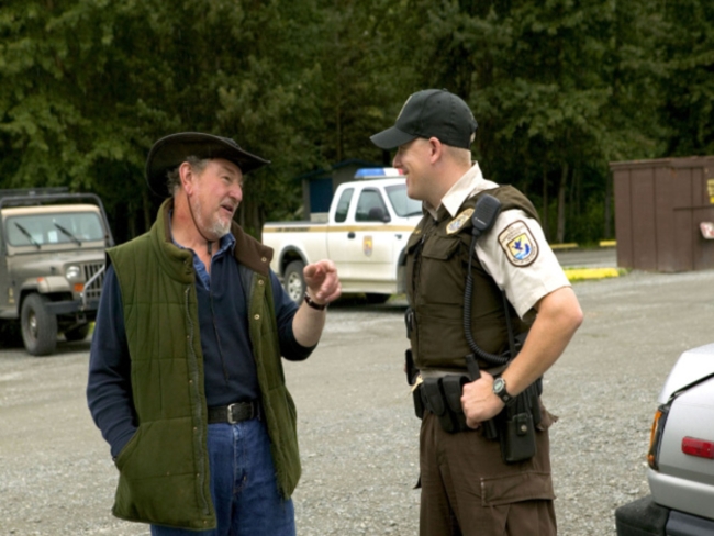 Refuge employee converses with a visitor.