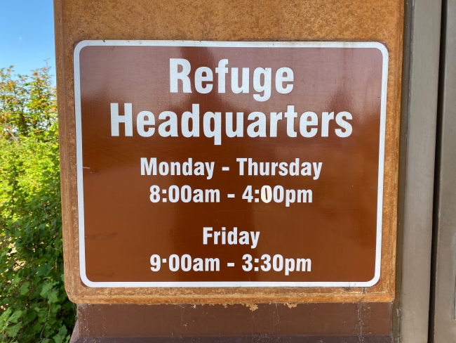 To speak with refuge staff, you can visit the headquarters office, next to the Visitor Center, Monday through Thursday 8am to 4pm and Friday from 9am to 3:30pm. Volunteers are also at the front desk of the Visitor Center during its open hours, Tuesday through Sunday, 10am to 4pm.