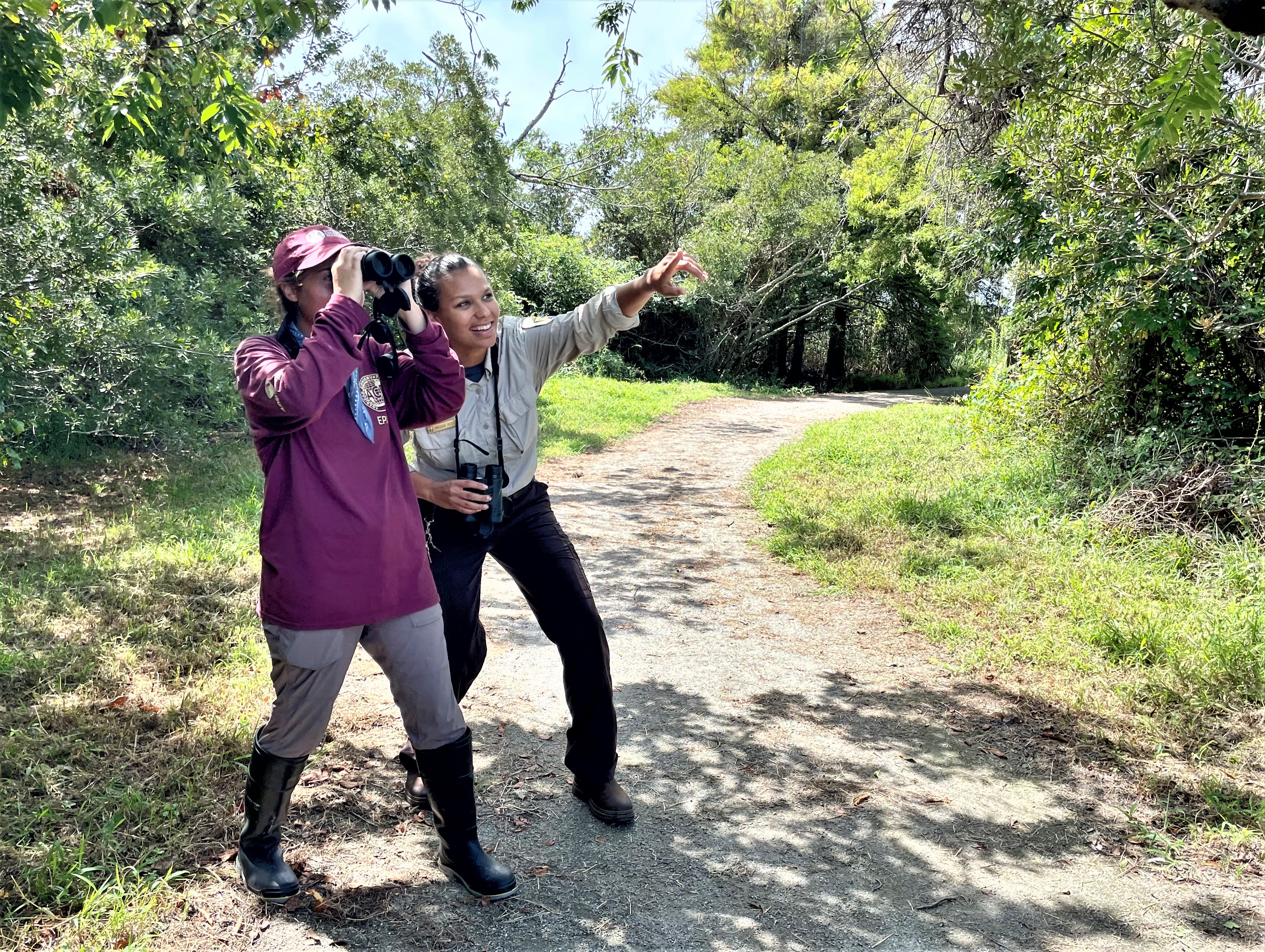 Manager Megan Reed, right, and American Conservation Experience intern Chantel Pence at Back Bay National Wildlife Refuge in Virginia.
