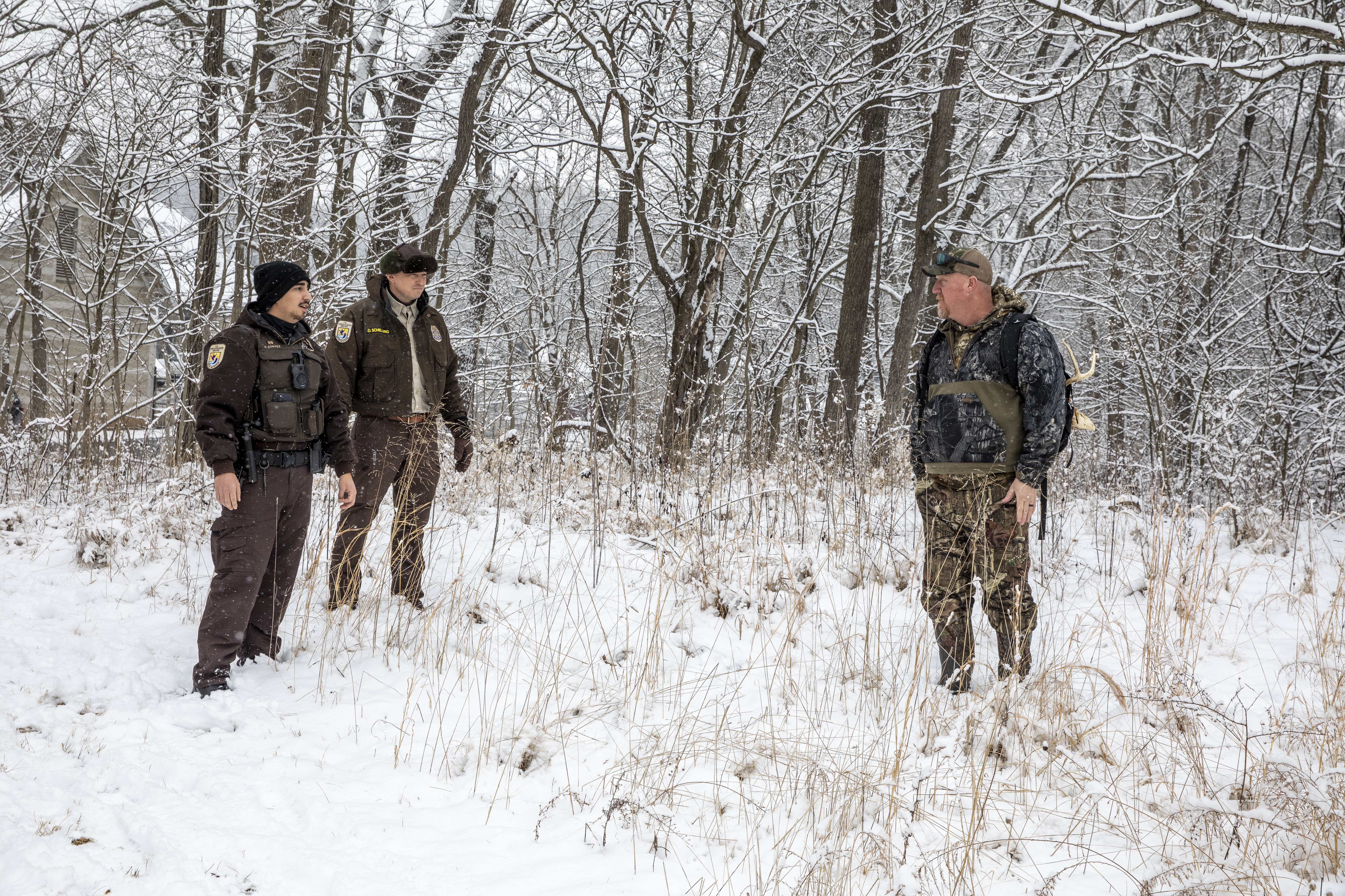 U.S. Fish and Wildlife refuge officers check the hunter's license