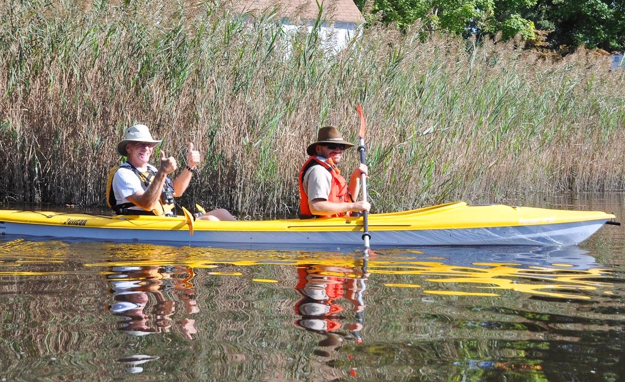 Refuge Ranger and Volunteer Leading a Public Kayak Paddle to View Wildlife on the River
