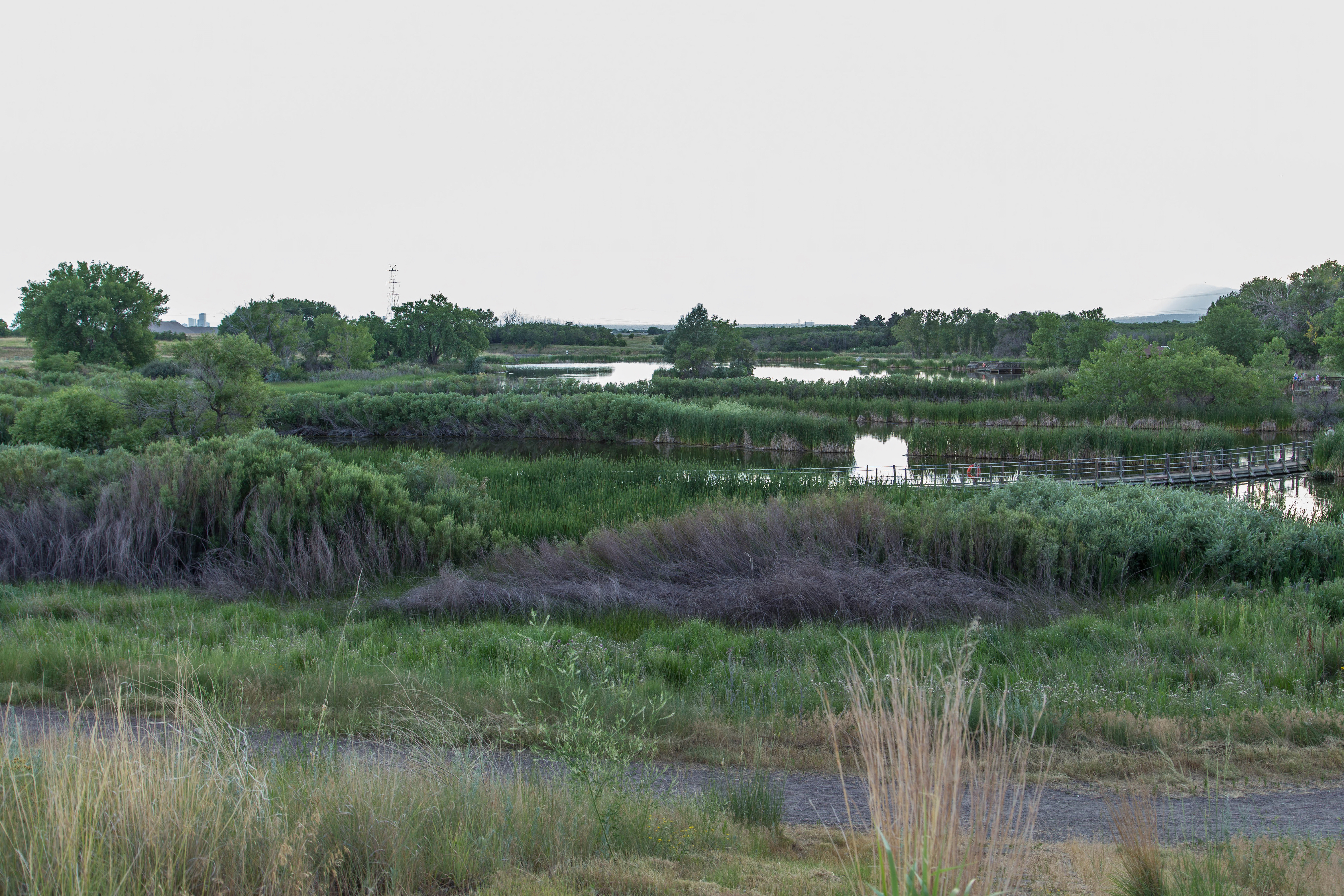 Scenic view of water and landscape at Rocky Mountain NWR.