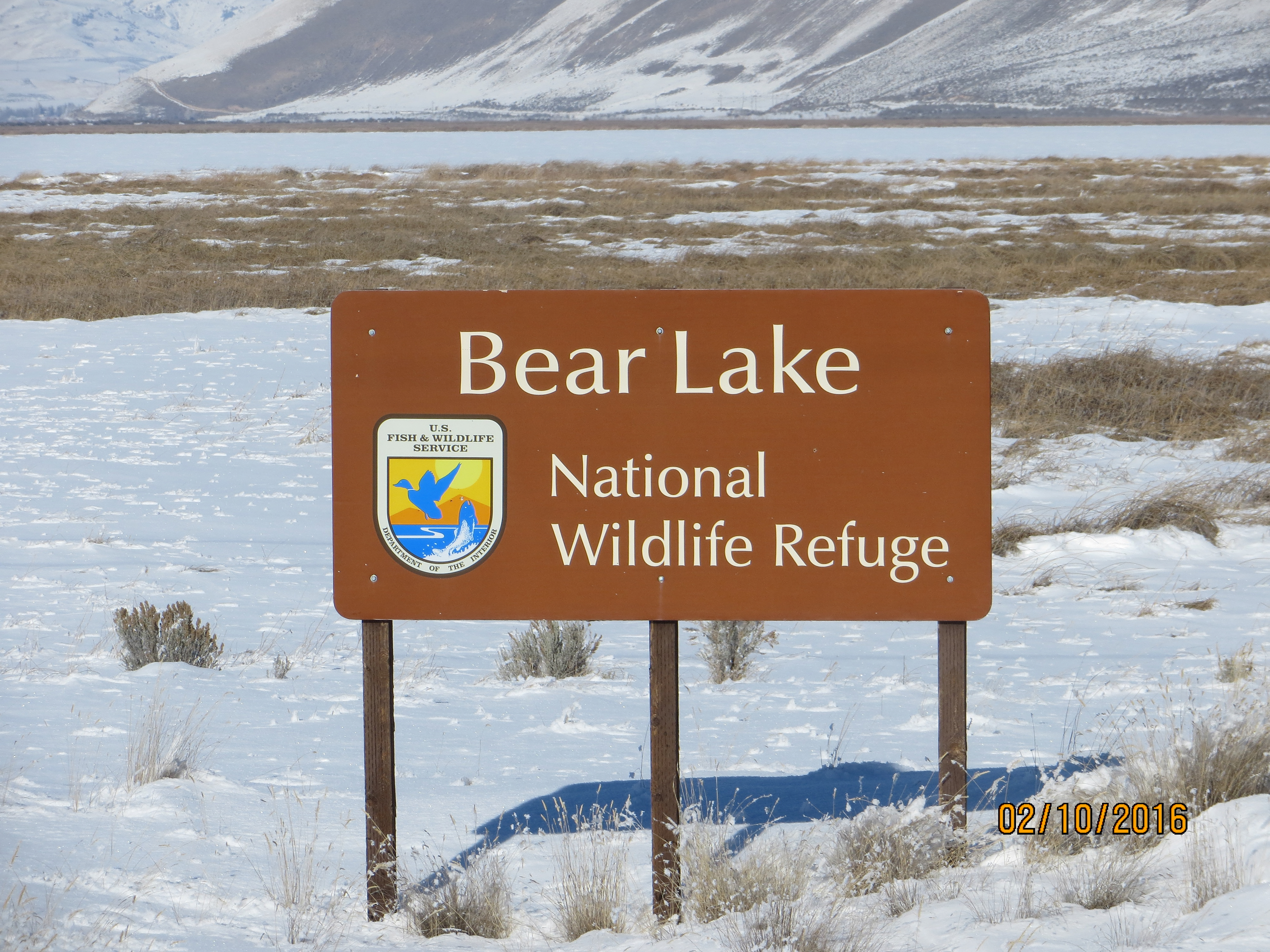 Bear Lake National Wildlife Refuge sign at Montpelier, Idaho.