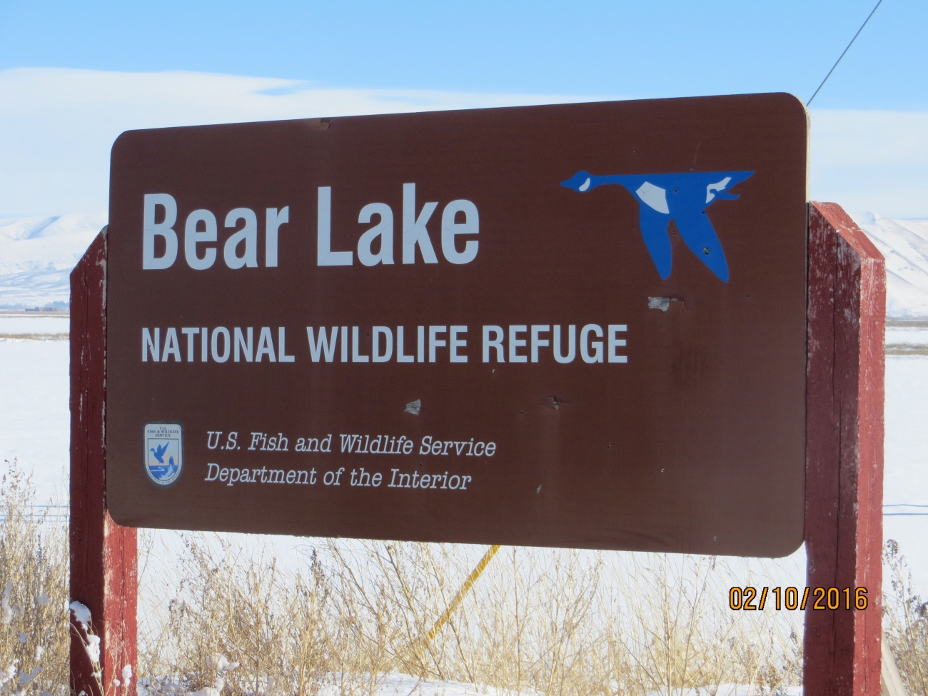 Bear Lake National Wildlife Refuge sign at Montpelier, Idaho.
