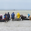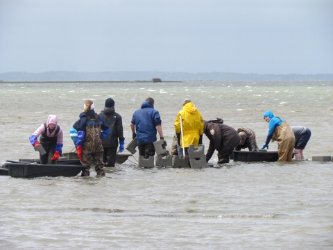 Refuge staff and volunteers and The Nature Conservancy volunteers build oyster castles