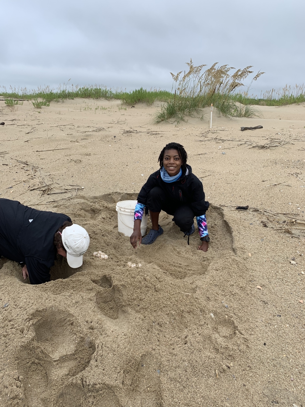 Lila Managault and Berta Leary relocate a Loggerhead nest