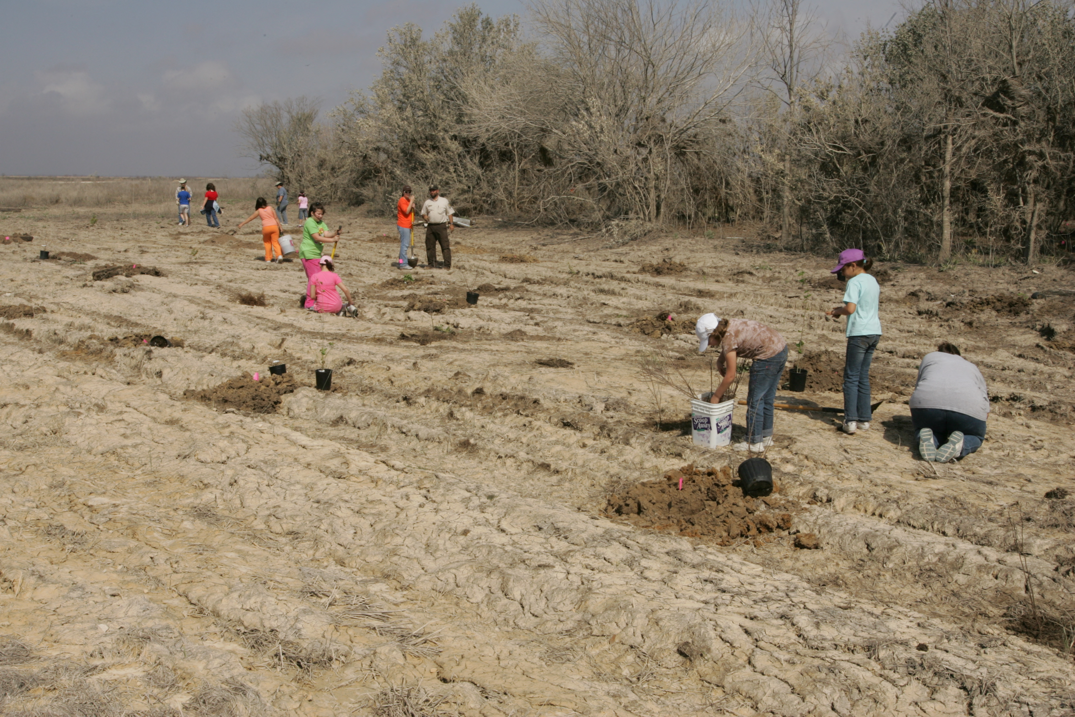 Girl Scouts help employees replant trees in hurrikane Ike's wake.