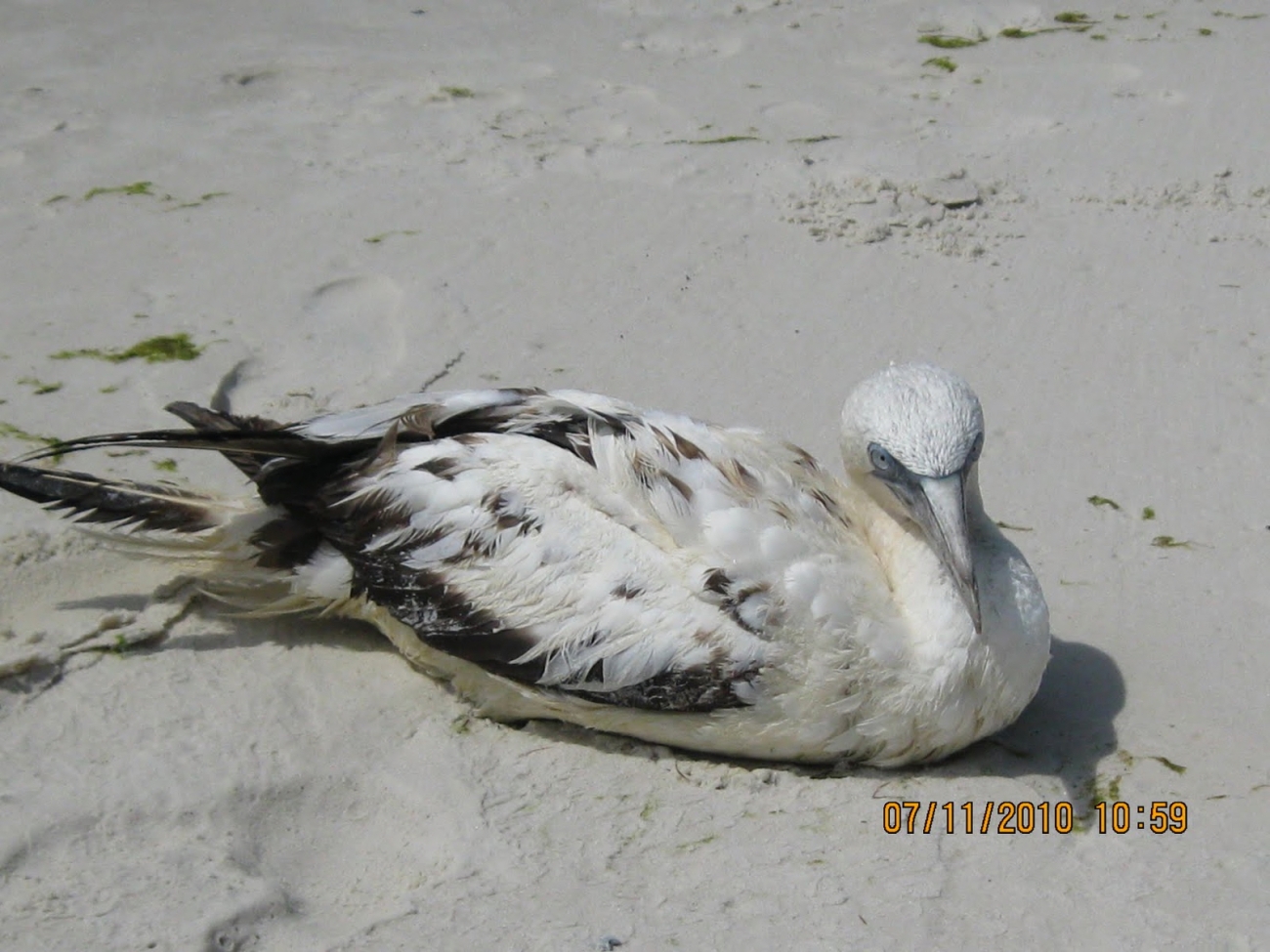 July 11, 2010 Destin, FL - A Northern Gannet with no visible oil was rescued near Destin Harbor, FL. Photo by USFWS.