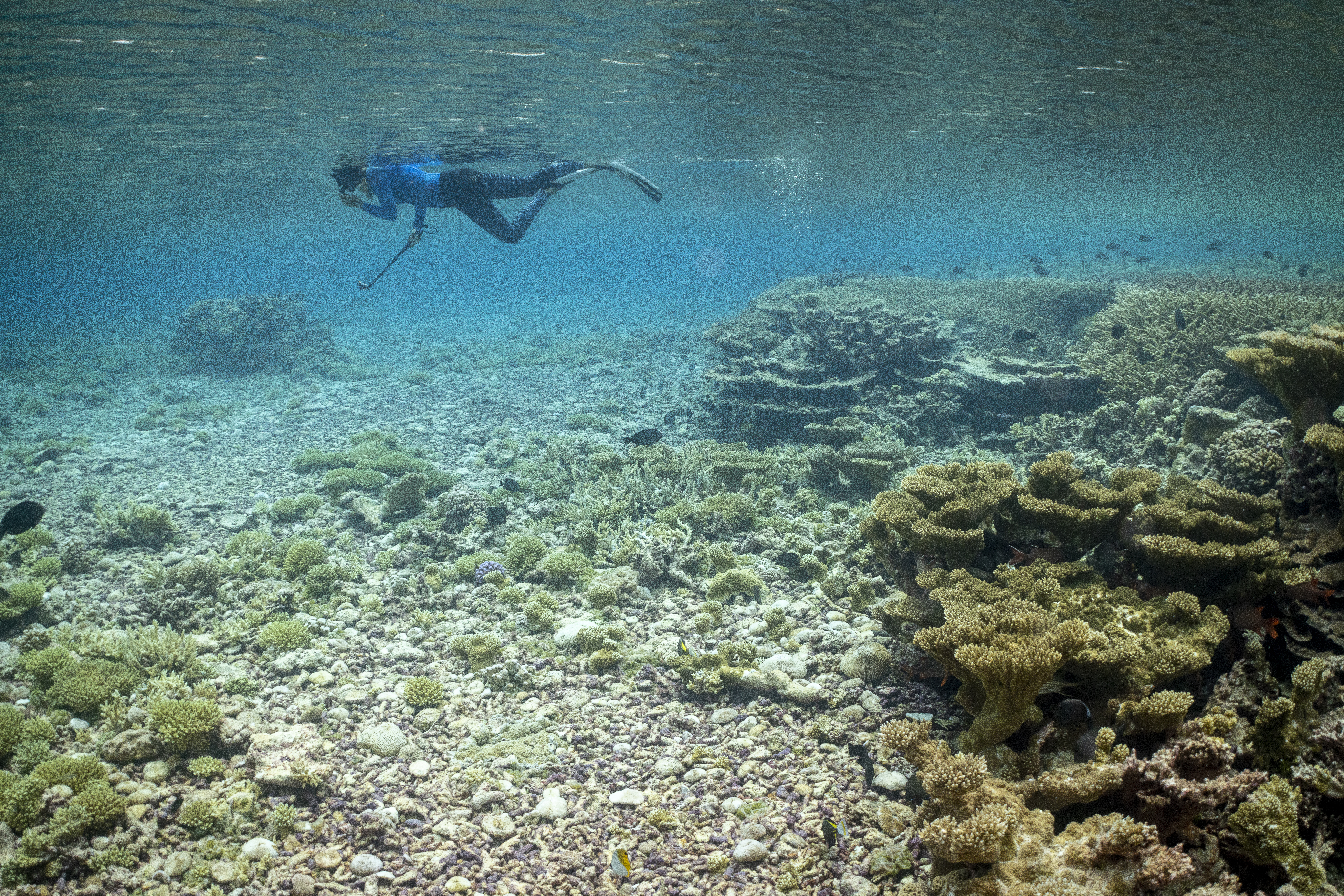 Researcher surveying young corals at Palmyra Atoll
