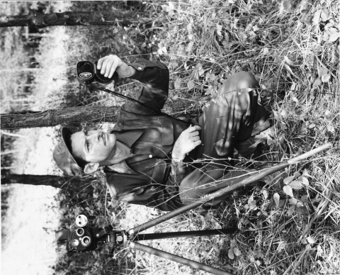 Rex Gary Schmidt, Manager, Section of Visual Information, U.S. Fish and Wildlife Service, on location in North Carolina, c. 1950. Photograph by Bob Hines.