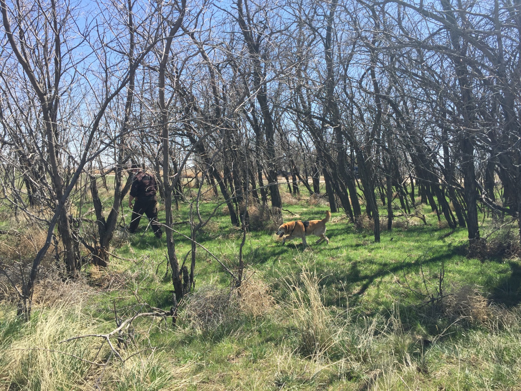 Rex tracking down wildlife parts during training. Kate Miyamoto-USFWS
