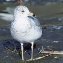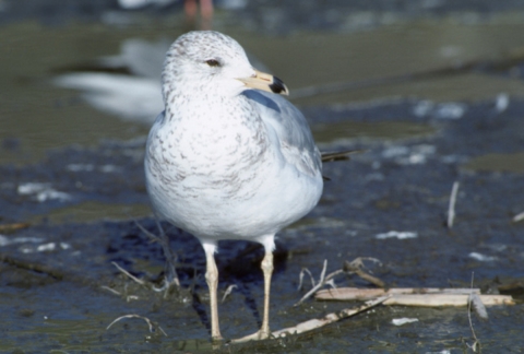Close-up of an immature ring-billed gull in Siskiyou County. For more information about birds visit http://www.fws.gov/birds/. Eyes of ring-billed gulls don't turn pale until later in life, and this is a young bird (in its second calendar year, about 9-10 months old).