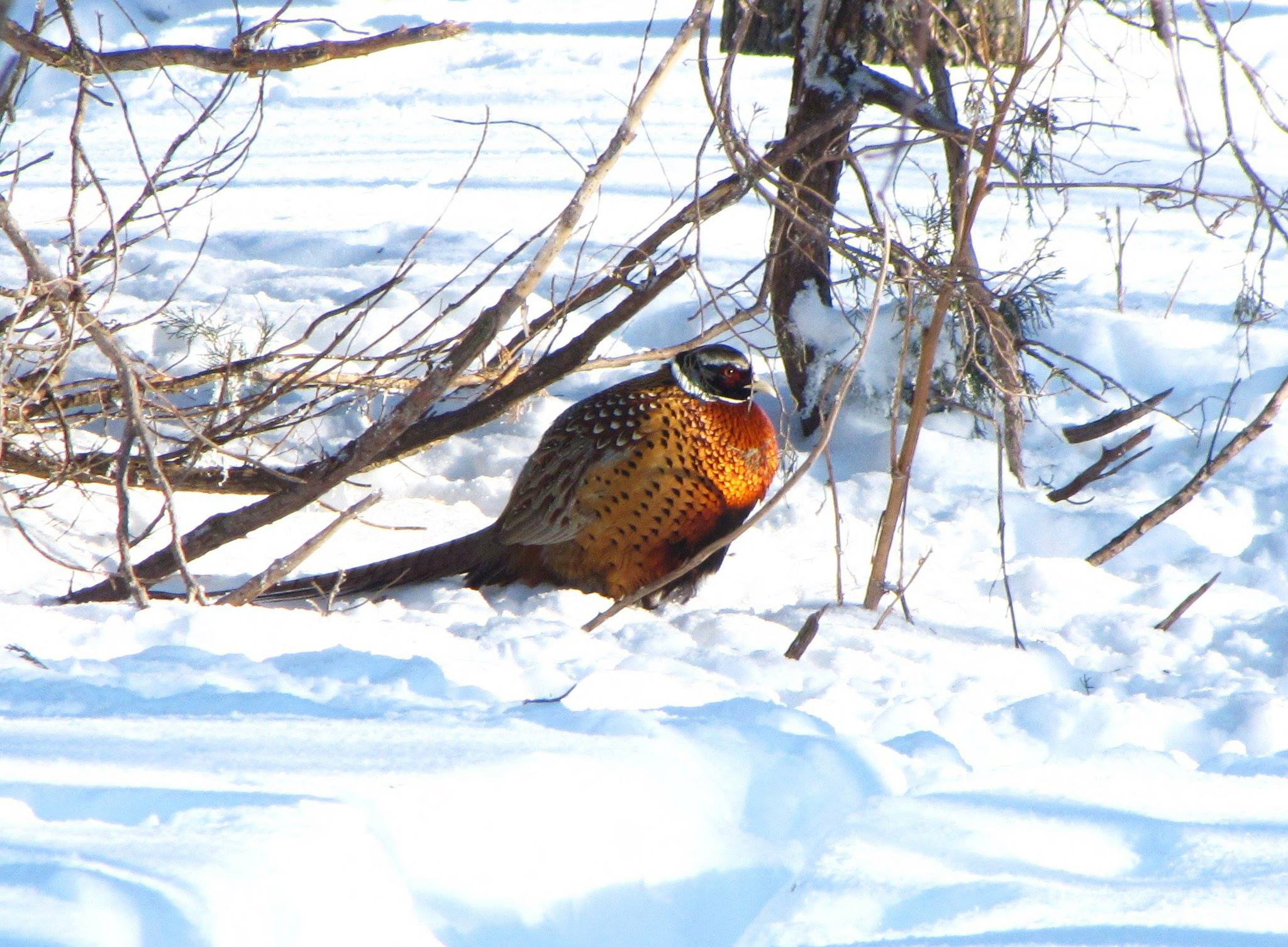 Ring-necked Pheasant in the snow at Morris Wetland Management District in Minnesota.