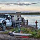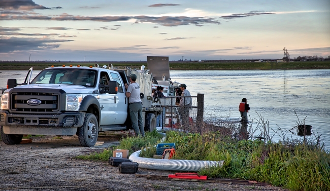 Fish and Wildlife Service biologists and partners prepare to release nearly 90,000 juvenile spring-run Chinook salmon into the San Joaquin River at the Eastside Bypass in March 2017.