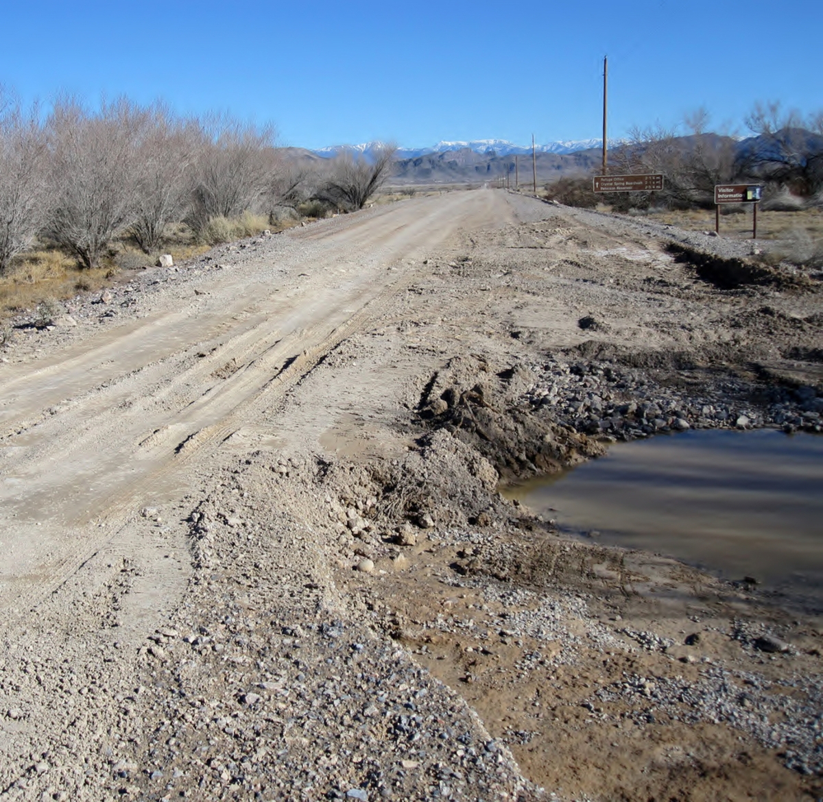 Heavy rains in late December 2010 left many of the roads in nearly impassable condition due to washouts and debris in the Ash Meadows National Wildlife Refuge. Visitiors were advised to avoid the damaged roads. If deciding to travel through the Refuge, drivers would be at their own risk. Image taken from USFWS Pacific Southwest Region Flickr page.