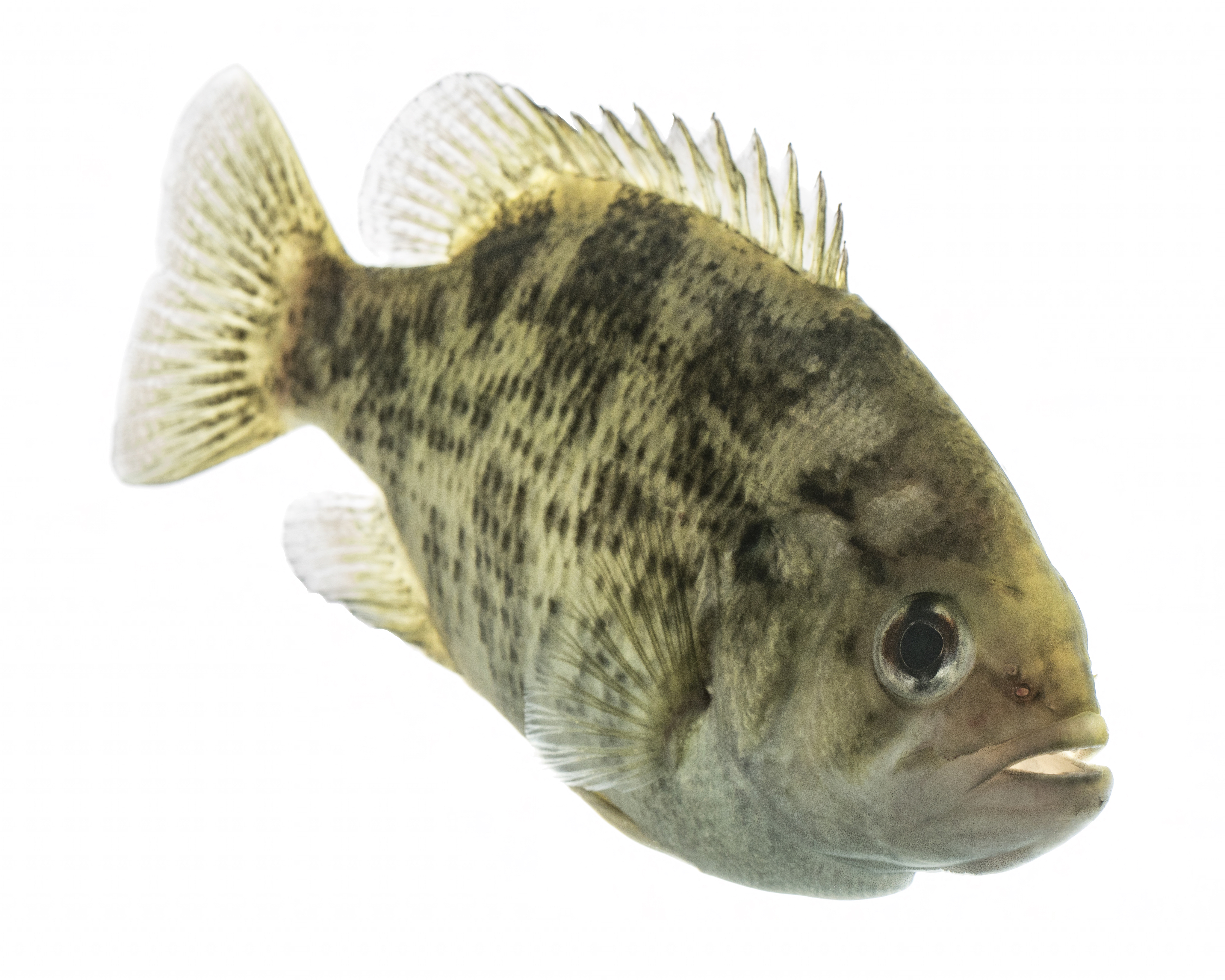 Rockbass can change from light to dark colored very quickly to blend in with their surroundings. They have a large mouth and red eyes. Rockbass have a dark tear drop below their eye.