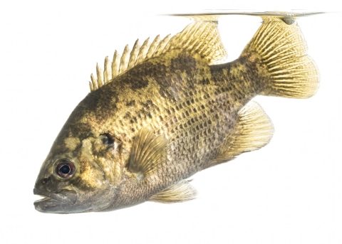 Rockbass can change from light to dark colored very quickly to blend in with their surroundings. They have a large mouth and red eyes. Rockbass have a dark tear drop below their eye.