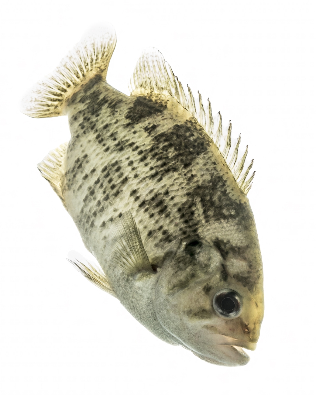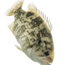 Rockbass can change from light to dark colored very quickly to blend in with their surroundings. They have a large mouth and red eyes. Rockbass have a dark tear drop below their eye.