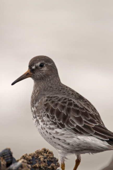 A stocky shorebird of the rocky Pacific Coast, the Rock Sandpiper winters farther north than any other North American shorebird.