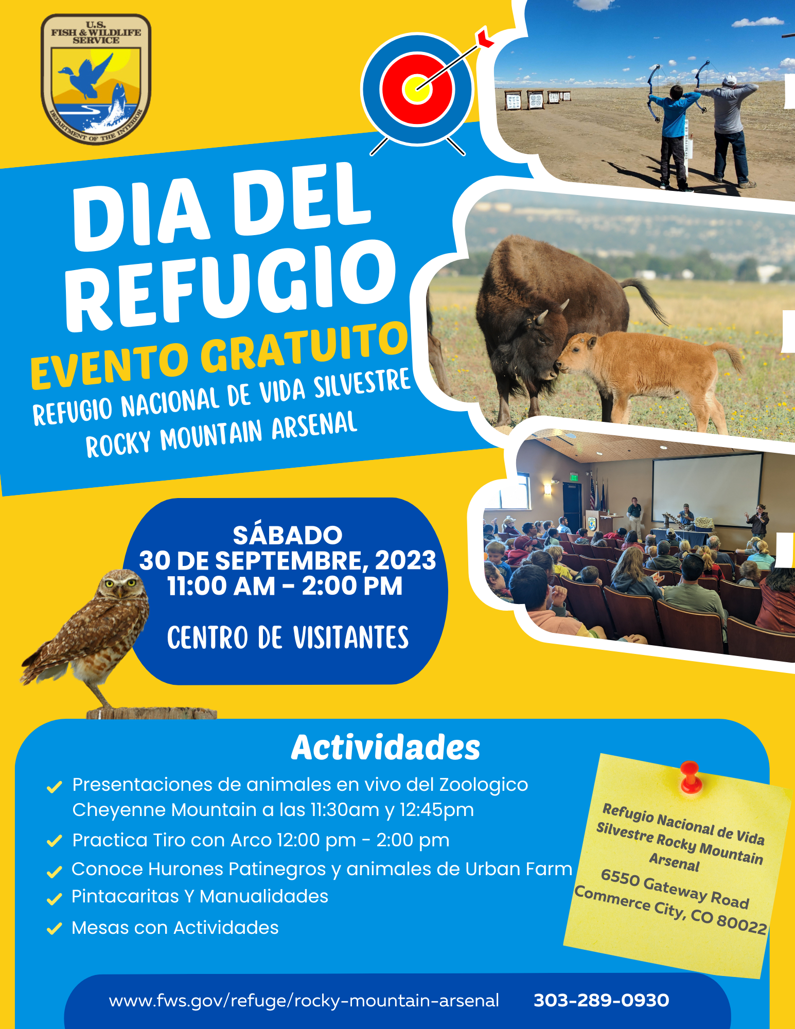 Rocky Mountain Arsenal NWR Refuge Day Event Flyer 2023 Spanish