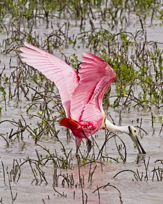 Roseate spoonbill searching for food