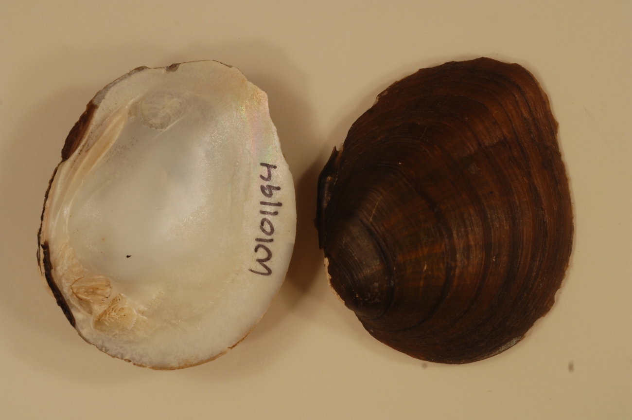 NCTC Freshwater Mussels Teaching Collection: Order: Unionoida Family: Unionidae Genus (ITIS): Pleurobema Species: sintoxia Williams et al.: Use to be: Location Name: Wolf River, downstream of Hwy 22 bridge, Shawano Location State: WI