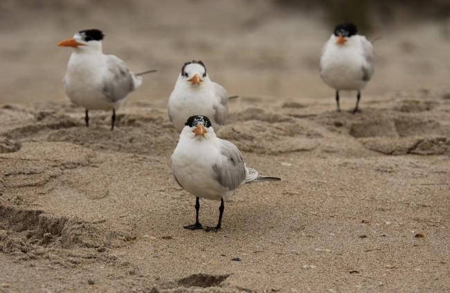 A quintessentially saltwater species, this tern feeds inshore along barrier beach oceanfronts and back bays, occasionally ranging farther offshore when foraging, especially when feeding chicks.