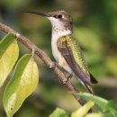 The Ruby-throated Hummingbird, eastern North America's only species of breeding hummingbird, is a familiar summer inhabitant of woodlands, parks, and gardens from central Canada to the Gulf Coast. Length 75‚90 mm; average mass: male 3 g, female 3.5 g. Photographed in Sabine Woods, Jefferson County, Texas.