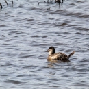 Ruddy ducks are compact, thick-necked waterfowl with seemingly oversized tails that they habitually hold upright. They are one of the stiff-tailed ducks.