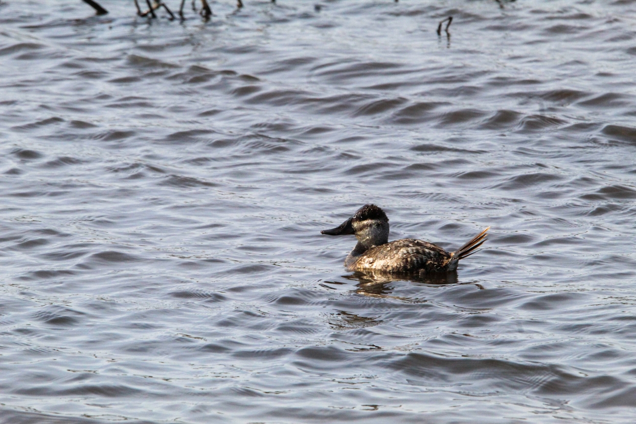 Ruddy Ducks are compact, thick-necked waterfowl with seemingly oversized tails that they habitually hold upright