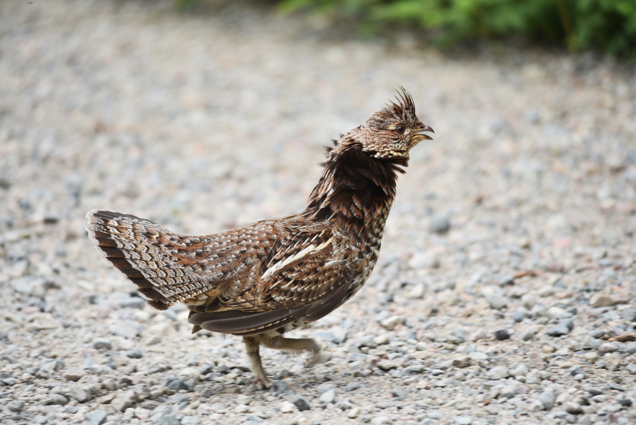 We spotted this ruffed grouse mom stopping traffic to ensure her chicks remained safe.