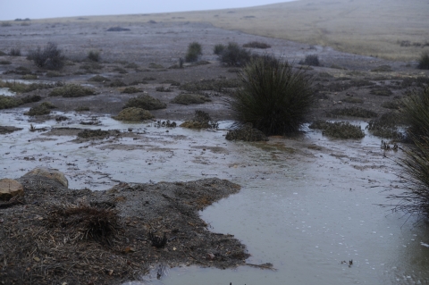 Pools of run off on the san Diego National Wildlife refuge threaten to submerge plant life.