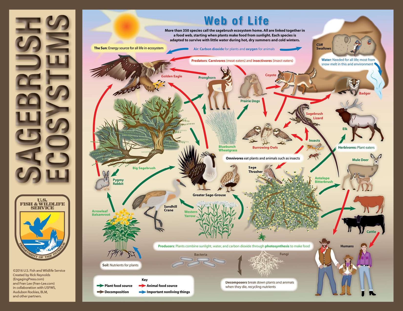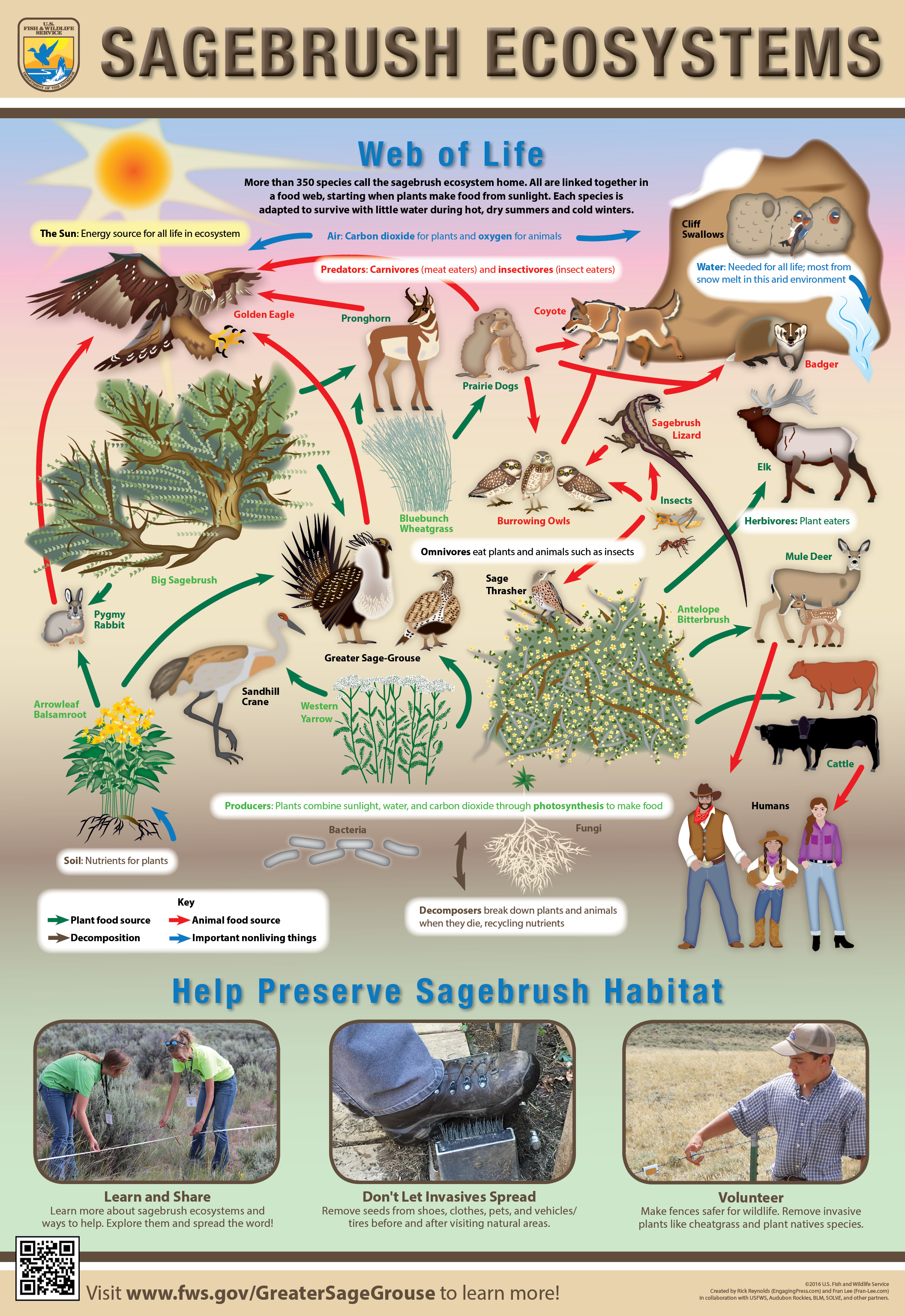 Here you will find several versions of the Sagebrush Ecosystem poster for downloading and printing. Perfect for displaying in classrooms, this engaging display showcases the more than 350 species that call the sagebrush sagebrush