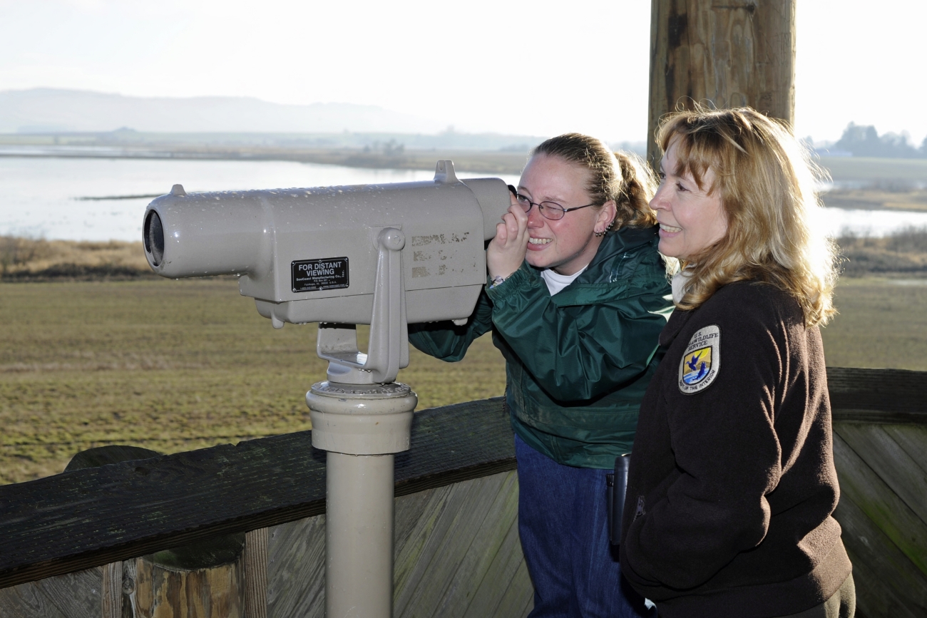 Fish and Wildlife Service employee Sallie Gentry gives a lesson in wildlife viewing.