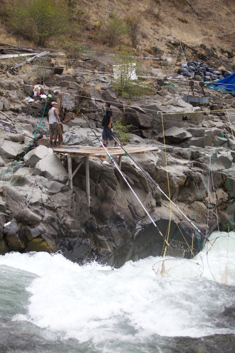 Yakama tribal members fish in the Klickitat River for Fall Chinook salmon. Dip nets, traditional fishing, Columbia River Fishery, Hatchery Columbia River Inter-Tribal Fish Commission. Pacific Northwest Fisheries.
