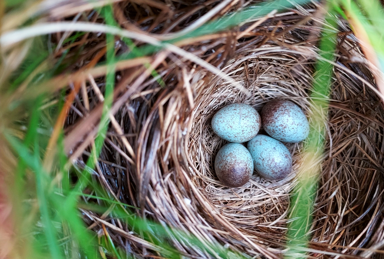 Saltmarsh sparrow nest with 4 eggs at Rachel Carson National Wildlife Refuge