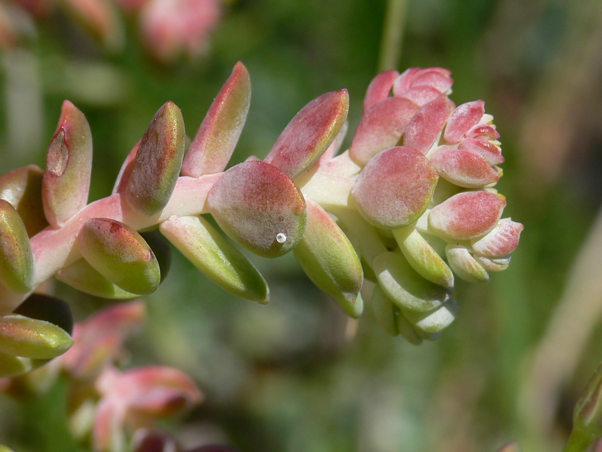 A San Bruno Elfin butterfly egg shown here was deposited on its host plant, stonecrop (Sedum spathulifolium).