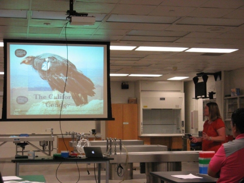 Michele Atha and Matthew Patterson assisted the San Diego Zoo Institute for Conservation Research in the NCTC Science lab. Groups conducted wildlife exercises for their Teacher Workshop in Conservation Science. They analyzed wildlife blood samples, among other things, in the Biomedical Lab.