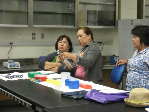 Michele Atha and Matthew Patterson assisted the San Diego Zoo Institute for Conservation Research in the NCTC Science lab. Groups conducted wildlife exercises for their Teacher Workshop in Conservation Science. They analyzed wildlife blood samples, among other things, in the Biomedical Lab.