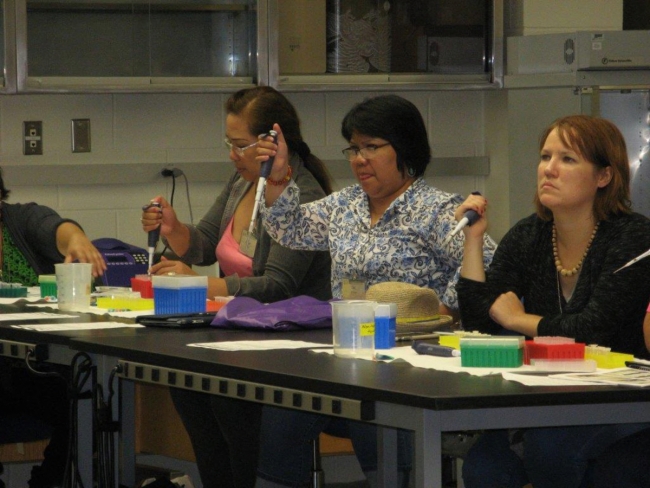Michele Atha and Matthew Patterson assisted the San Diego Zoo Institute for Conservation Research in the NCTC Science lab. Groups conducted wildlife exercises for their Teacher Workshop in Conservation Science. They analyzed wildlife blood samples, among other things, in the Biomedical Lab.