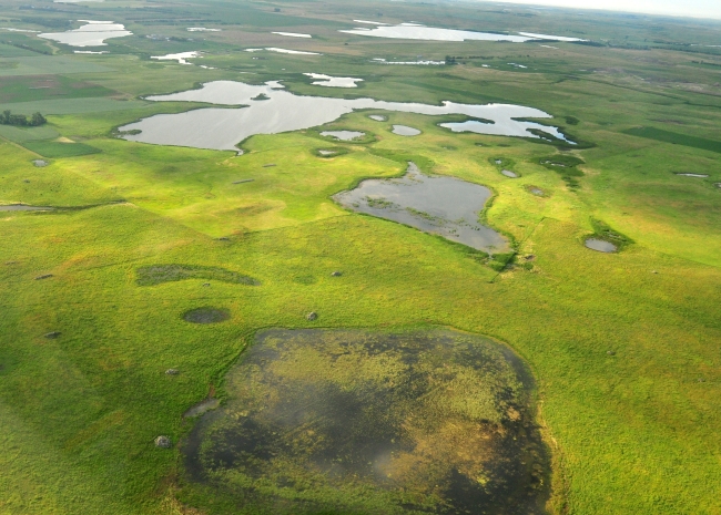 An aerial view of the Sand Lake Wetland Management District in South Dakota. This area supports some of the highest concentrations of nesting waterfowl in North America.