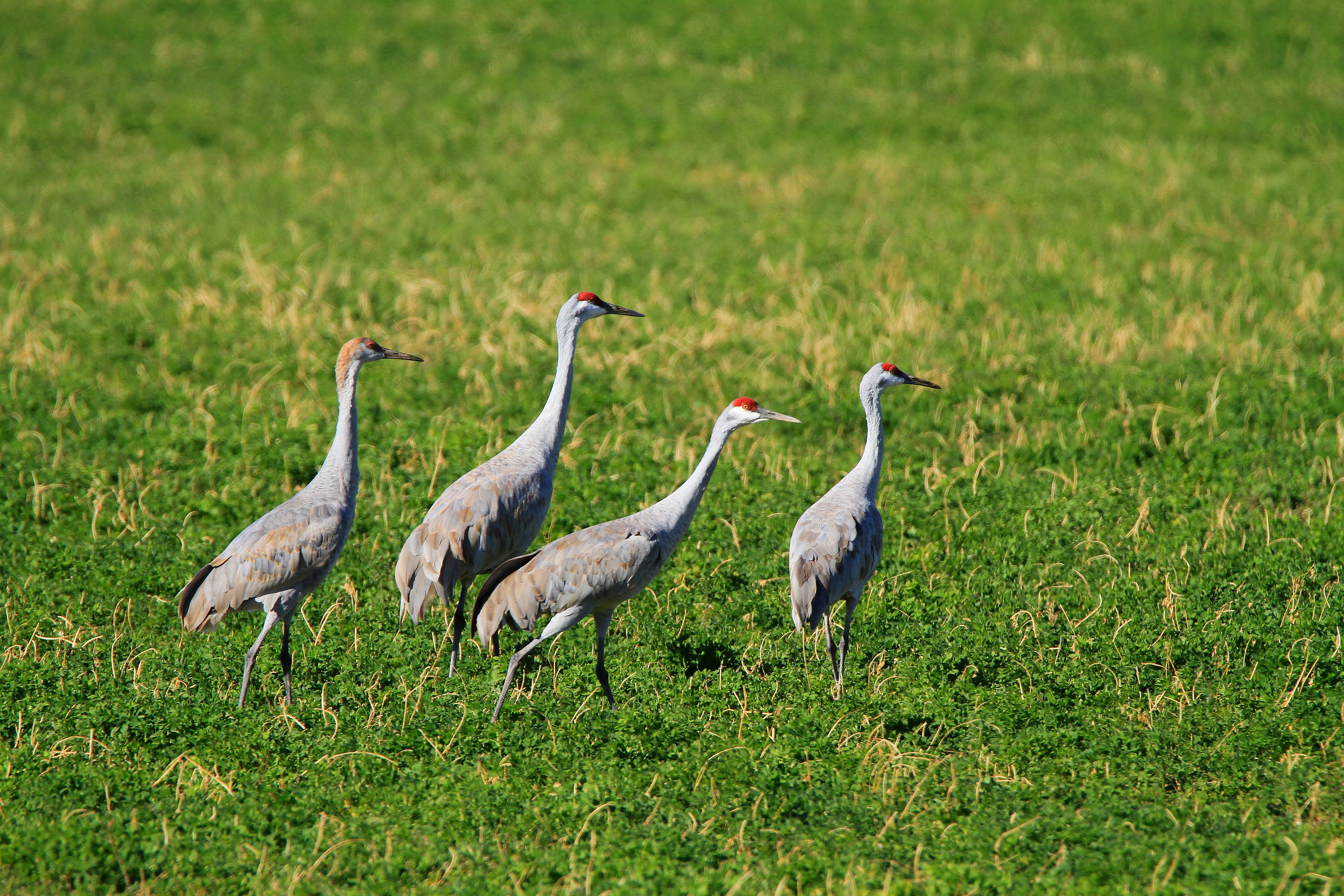 The sandhill crane is a large bird that lives in open habitats. Their call is a loud, rolling, trumpeting sound with a unique tone