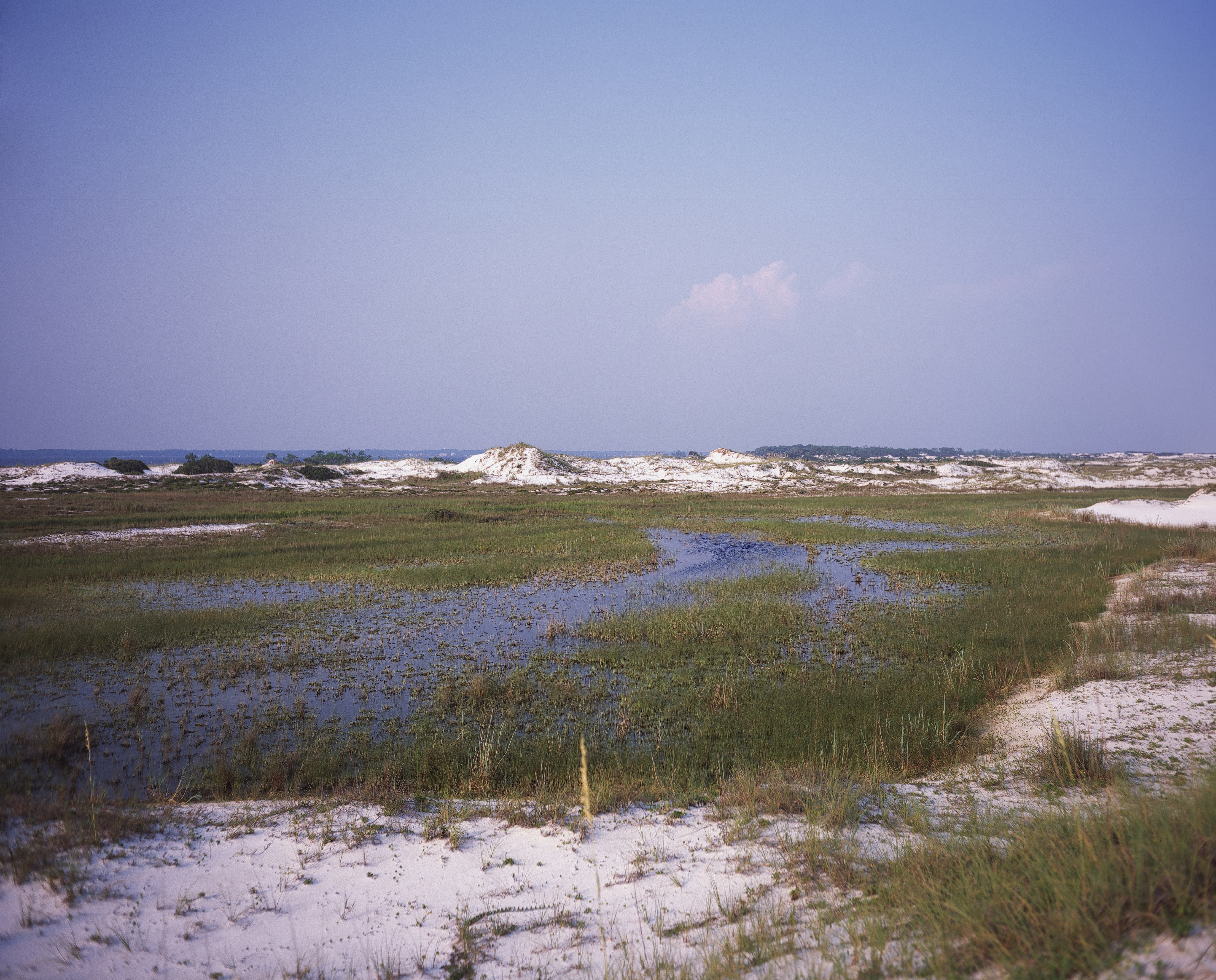 A scenic view of the shoreside at Santa Rosa Island located in Florida.