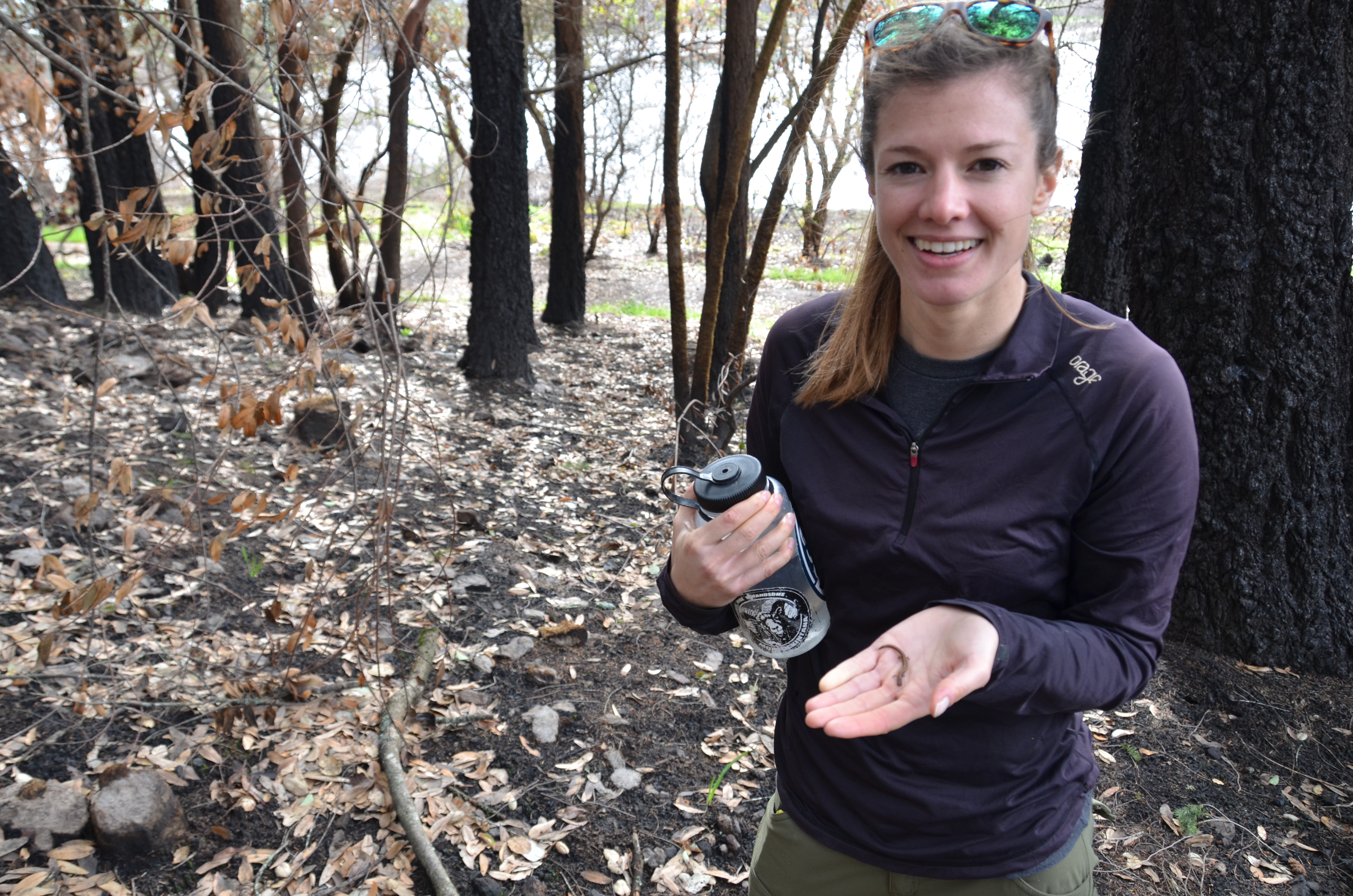 “I wanted to go on the site visit because I didn't feel I could fully understand the effects of the Nuns Wildfire without experiencing it in person. I was right.” — Sarah Markegard, fish and wildlife biologist, USFWS. Sarah holds a tiny California slender salamander she found at Ledson Marsh six months after the 2017 Nuns fire.