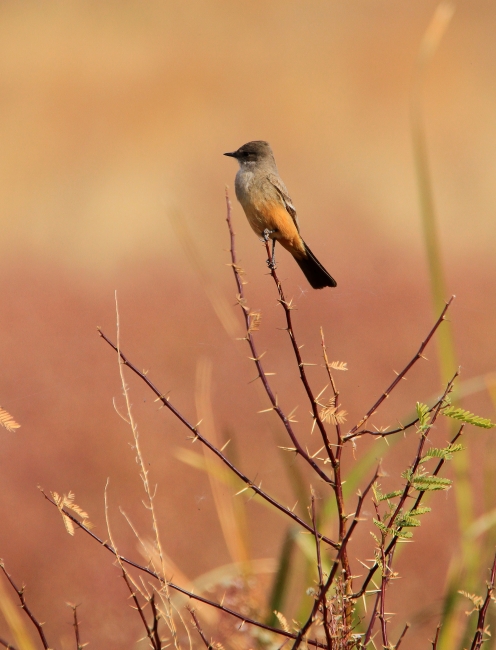 Say's Phoebes are slender, long-tailed flycatchers. These open-country birds have cinnamon-washed underparts to blend in with their surroundings.
