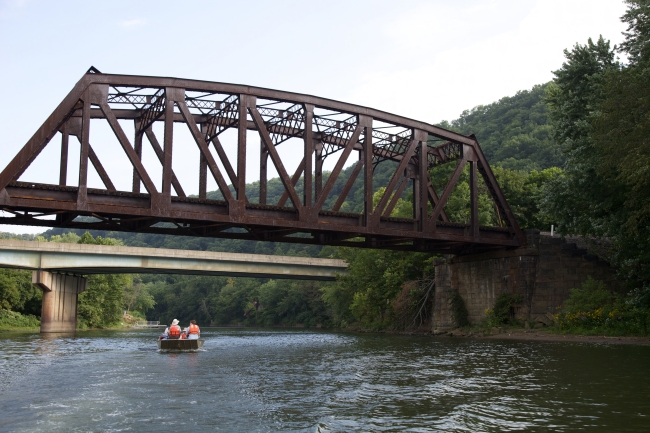 Ohio River Islands National Wildlife Refuge personnel in a boat on the Ohio River.