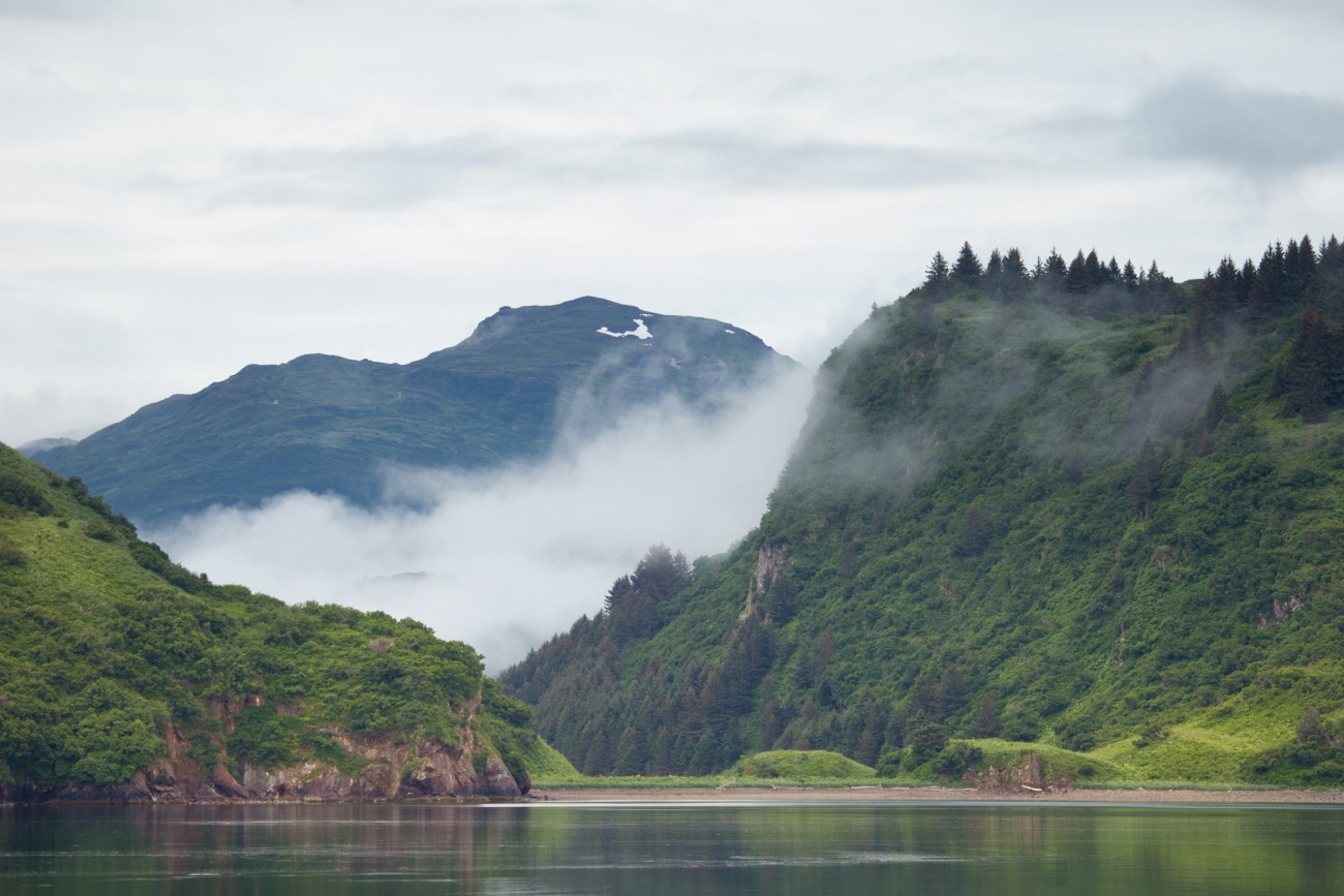 Fog forms in the distance of beautiful Kodiak National Wildlife Refuge.