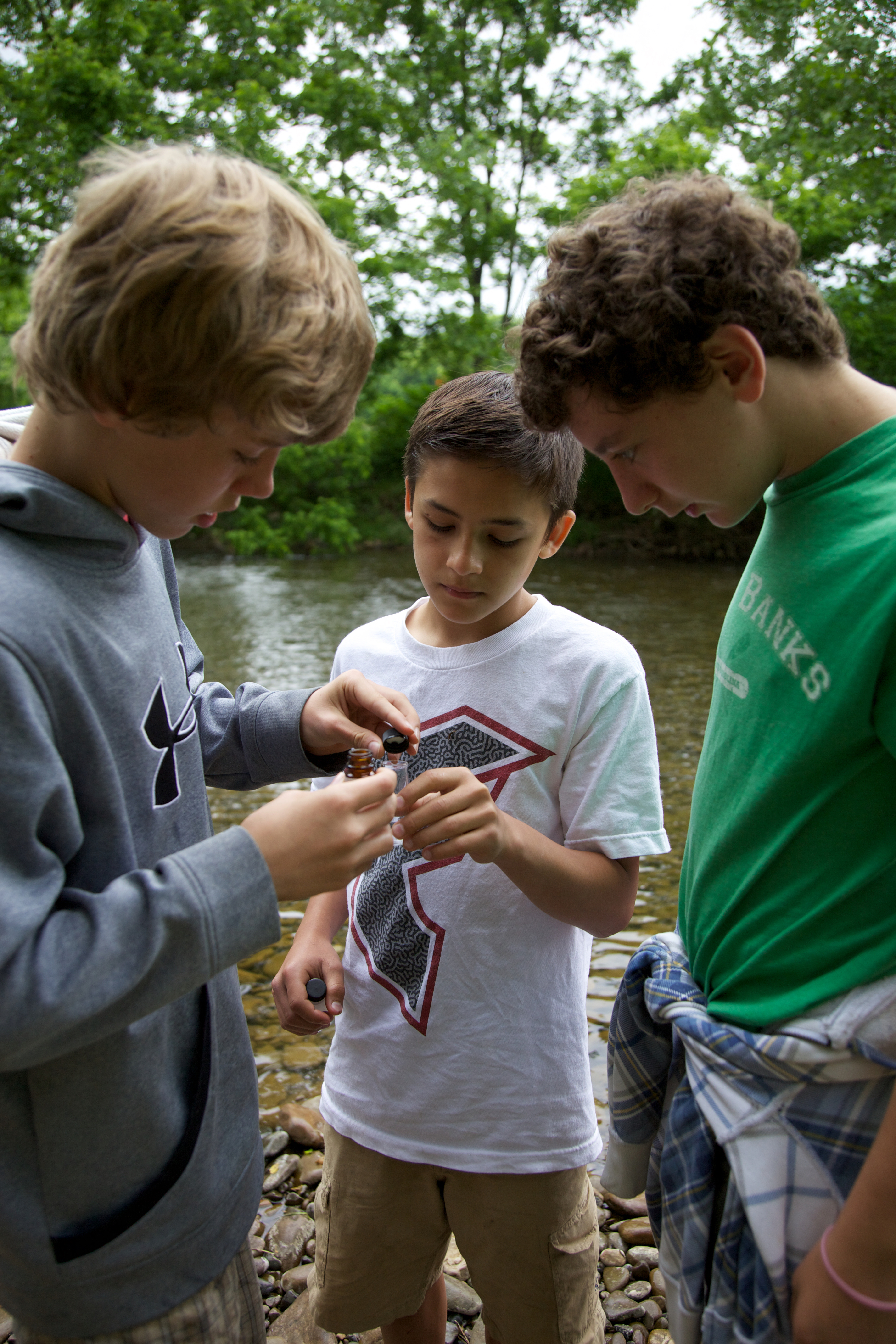 School children test water quality chemistry/survey macroinvertebrates at Seneca Rocks, WV.